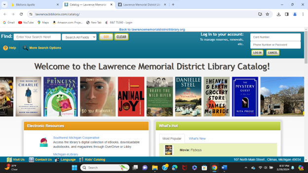 Come join us at the library to learn the Biblionix Data base used by your local library. Learn how to navigate this system, look for as well as reserve books. Learn the what power this system puts at your finger tips, without leaving your home.